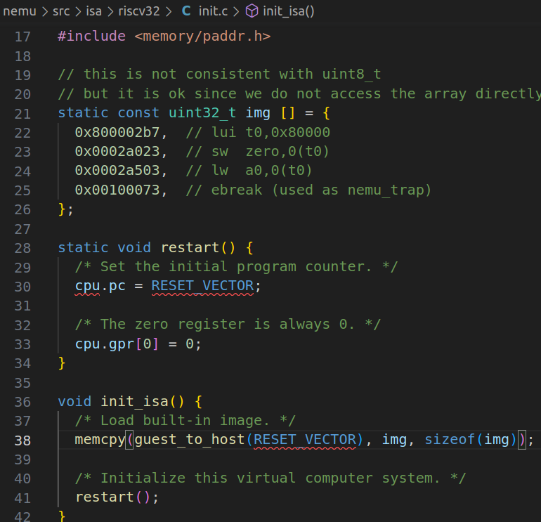 则RESET_VECTOR是0x80000000并且以uint32_t的形式保存下面
