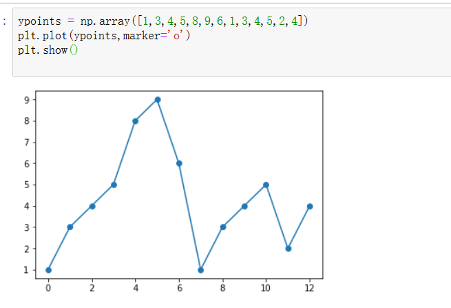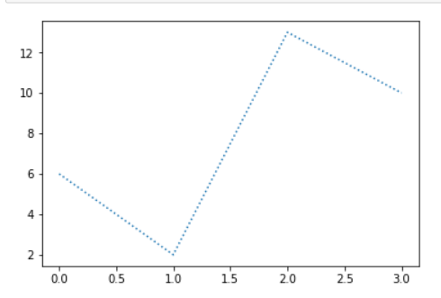 import matplotlib.pyplot as plt import numpy as np ypoints = np.array([6,2,13,10]) # plt.plot(ypoints,linestyle='dotted') plt.plot(ypoints,ls='dotted') plt.show()