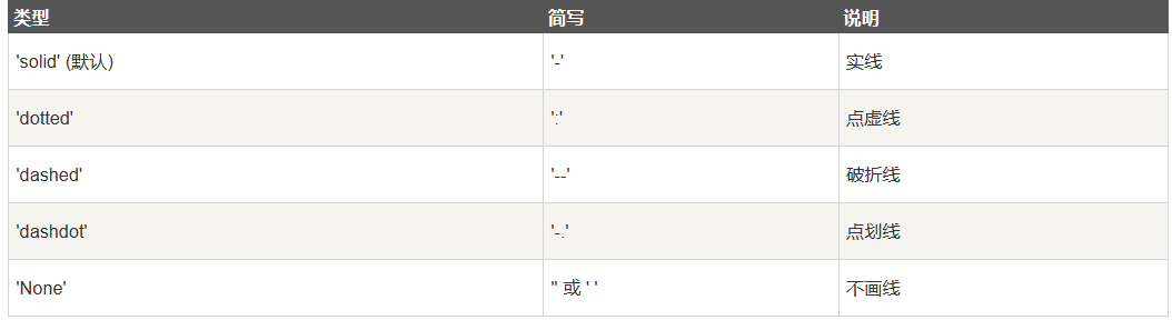 linestyle:'‐' 实线,'‐‐' 破折线,'‐.' 点划线,':' 虚线。