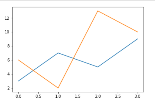 y1=np.array([3,7,5,9]) y2=np.array([6,2,13,10]) plt.plot(y1) plt.plot(y2) plt.show()
