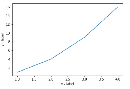 x = np.array([1,2,3,4]) y = np.array([1,4,9,16]) plt.plot(x,y) plt.xlabel("x - label") plt.ylabel("y - label") plt.show()