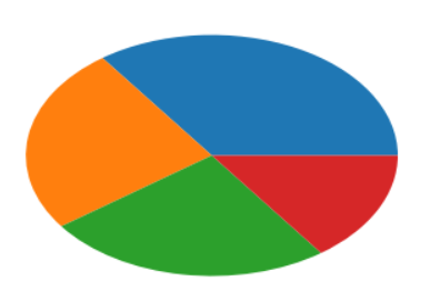 import matplotlib.pyplot as plt import numpy as np y = np.array([35,25,25,15]) plt.pie(y) plt.show()