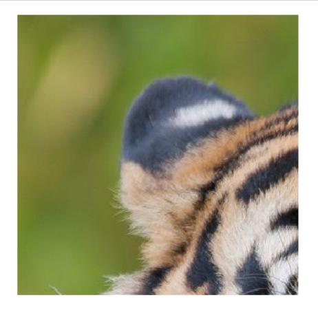 plt.figure(figsize = (6,6)) plt.imshow(tiger[:300,100:400,:]) plt.axis('off') plt.show()