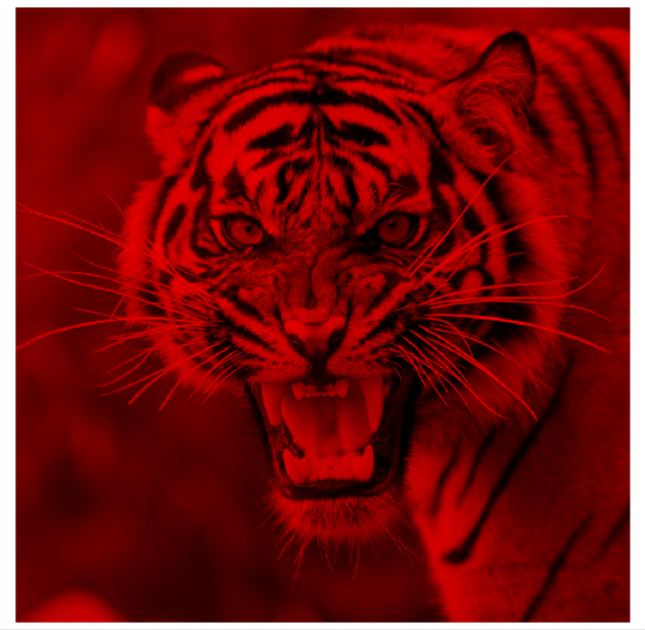 tiger_red = tiger.copy() #设置reg的绿色和蓝色坐标 tiger_red[:,:,[1,2]] = 0 plt.figure(figsize = (10,10)) plt.imshow(tiger_red) plt.axis('off') plt.show()