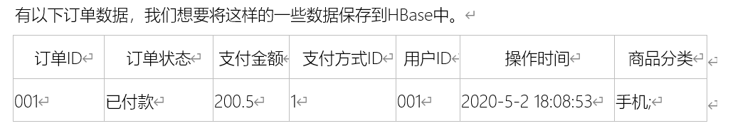 创建订单表,表名为ORDER_INFO,该表有一个列簇为C1(一个表可以包含多个列簇)
