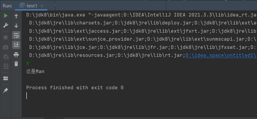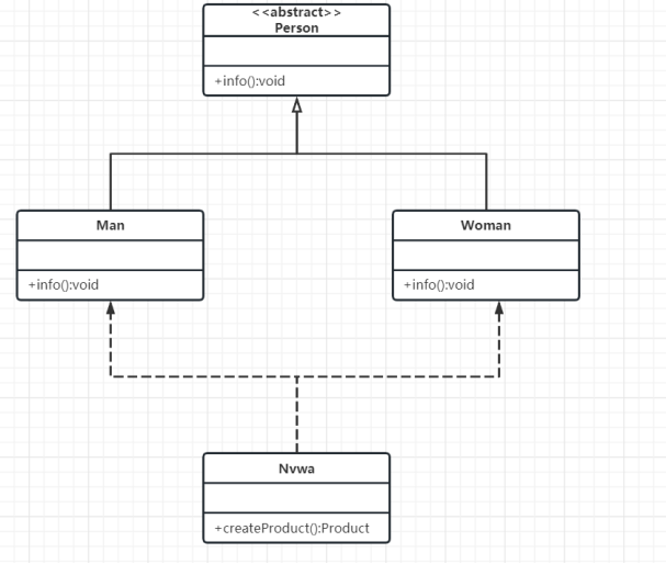 package test; import java.util.Scanner; public class test1 { public static void main(String[] args) { Scanner sc=new Scanner(System.in); String type=sc.next(); Person person=Nvwa.createPerson(type); person.info(); } } class Nvwa{ public static Person createPerson(String type) { Person person=null; switch (type) { case "M":person=new Man();break; case "W":person=new Woman();break; } return person; } } abstract class Person { public abstract void info(); } class Man extends Person{ @Override public void info() { System.out.println("这是Man"); } } class Woman extends Person{ @Override public void info() { System.out.println("这是Woman"); } }