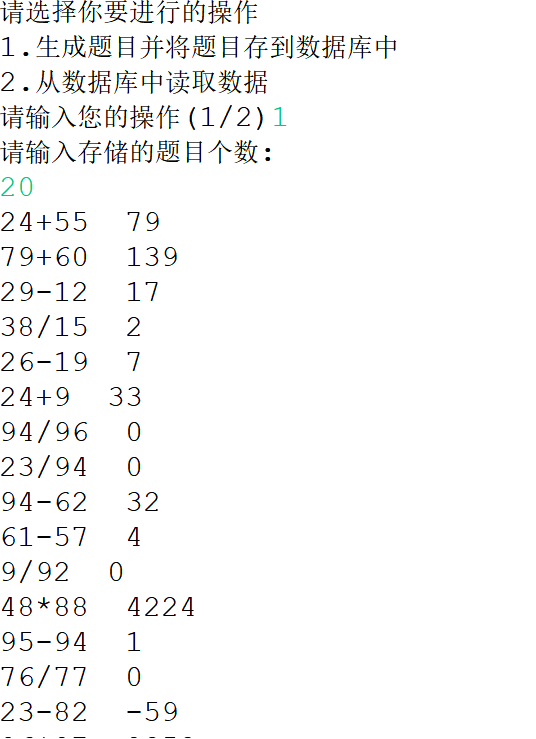 完成将生成的加减乘除算术添加到数据库中,并且将算数从数据库取出来