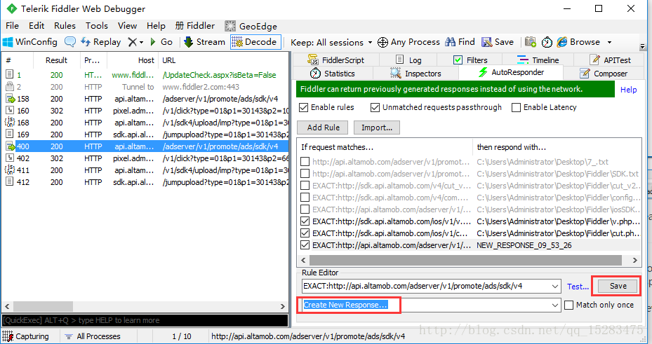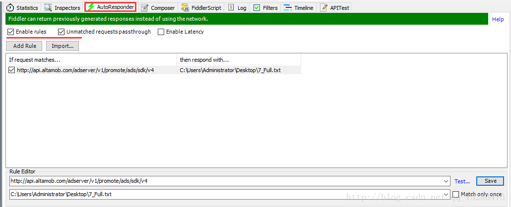 Enable rules:控制是否激活AutoResponder选项卡,如果没有选中该选项,选项卡上的其他选项就不可选。也就是说,不勾选此项,AutoResponder是不起作用的。
