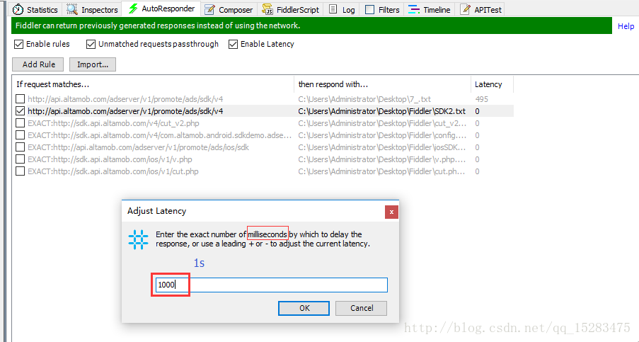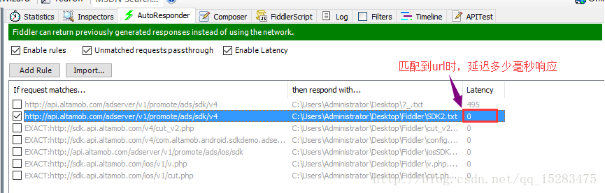 Enable Latency:控制匹配某个规则的请求时立即执行,还是延迟Latency字段中所指定的毫秒数。如果没有选中该选项,Latency字段就不会显示,使用这个选项可以更准确地模拟现实中的服务器响应,取消该选项可以提升性能。