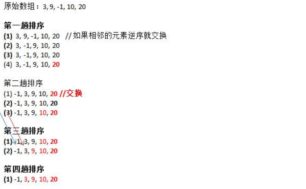 (2)每次两两进行比较,比较完指针各自后移一位,每一趟排序的次数在逐渐的减少