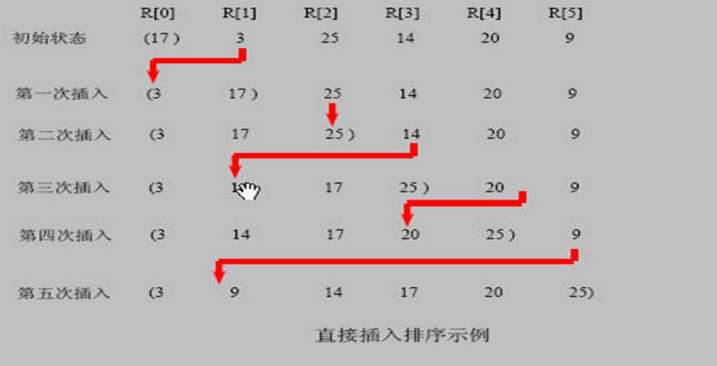 序码依次与有序表元素的排序码进行比较,将它插入到有序表中的适当位置,使之成为新的有序表。