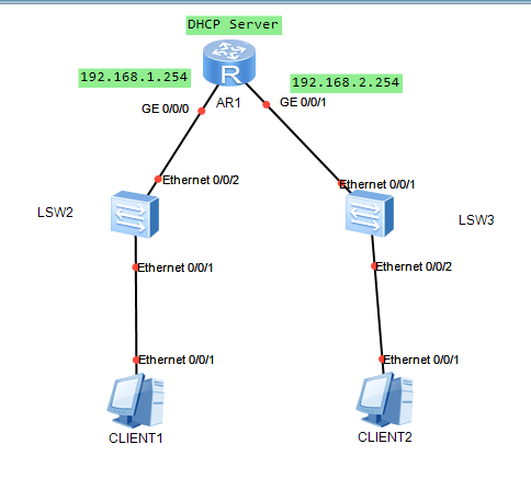 [R1-GigabitEthernet0/0/0]dhcp select interface //开启接口DHCP功能