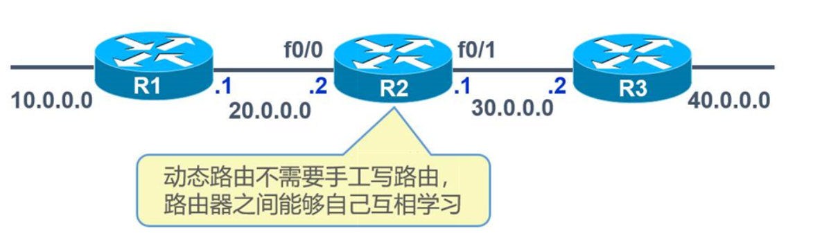 | 缺点 | 网络管理员难以了解整个网络的拓扑结构、网络状态动态变化时需要大范围的调整、生故障时不能重选路由 | 占用网络带宽(用于传输路由更新信息)、安全性不如静态路由。 |