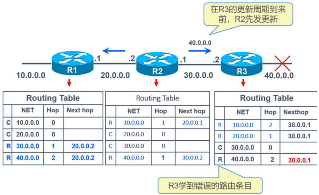 (1)定期更新:路由器每经过一段时间周期-30S后,向邻居发送更新信息;