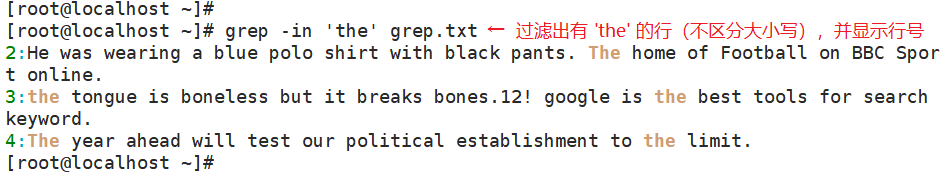 - -l 查询多文件时只输出包含匹配字符的文件名;