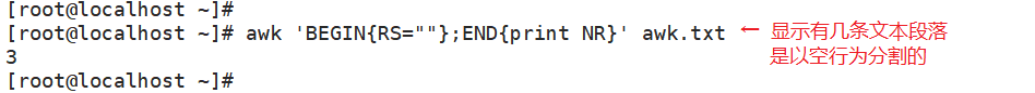 “行“分割符,awk从文件上读取资料时,将根据RS的定义把资料切割成许多条记录; |