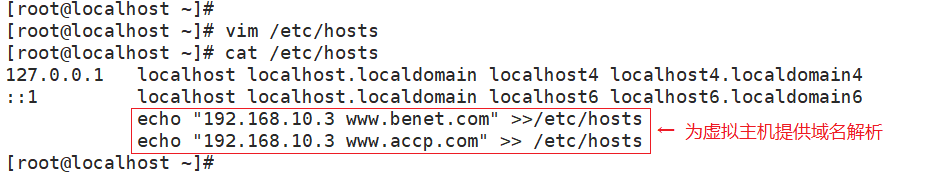 4 echo "192.168.80.100 www.benet.com" >>/etc/hosts