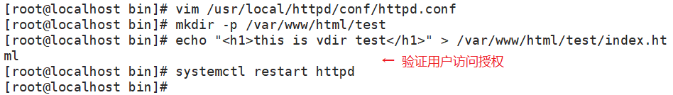 2 echo "<h1>this is vdir test</h1>" > /var/www/html/test/index.html