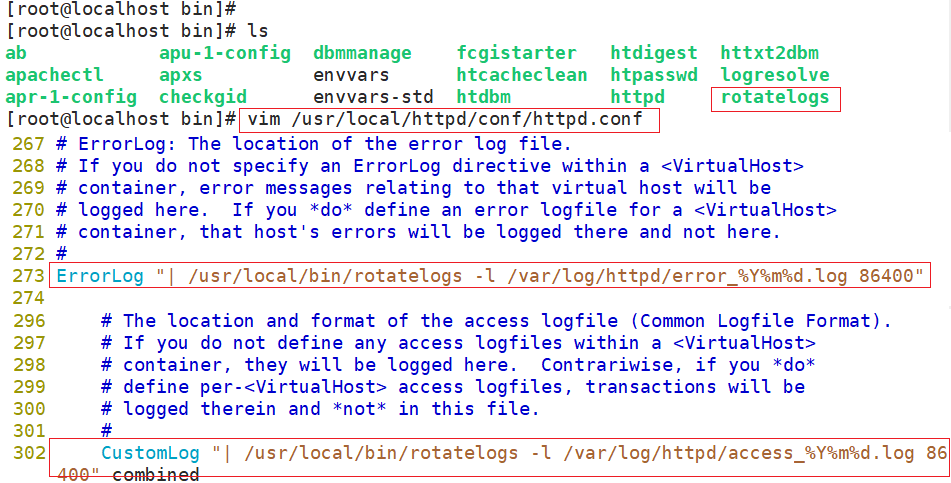 (1)修改主配置文件:使用 Apache 自带 rotatelogs 分割工具,将 Apache 的日志进行按每天的日期自动分割。