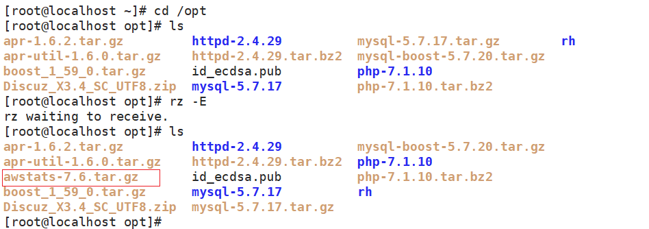 (1)将安装 AWStats 所需软件包传到 /opt 目录下