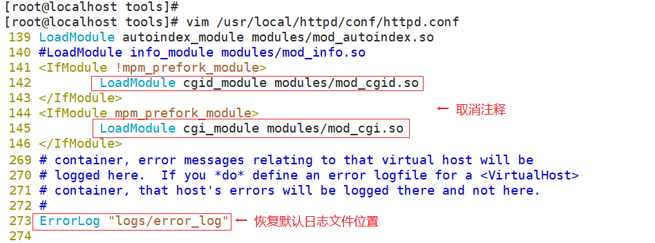 10 LoadModule cgi_module modules/mod_cgi.so #取消注释