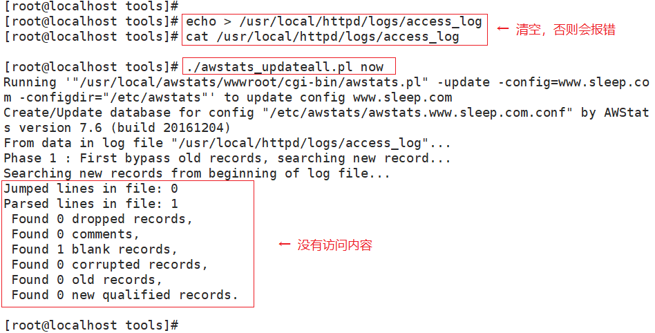 4 #注意,更新数据前最好先把access.log文件清空后重新访问站点,再获取日志数据。
