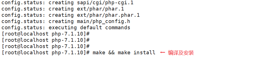 1 cd /opt 2 tar xjvf php-7.1.10.tar.bz2 3 4 cd php-7.1.10 5 6 ./configure \ 7 --prefix=/usr/local/php \ 8 --with-mysql-sock=/usr/local/mysql/mysql.sock \ 9 --with-mysqli \ 10 --with-zlib \ 11 --with-curl \ 12 --with-gd \ 13 --with-jpeg-dir \ 14 --with-png-dir \ 15 --with-freetype-dir \ 16 --with-openssl \ 17 --enable-fpm \ 18 --enable-mbstring \ 19 --enable-xml \ 20 --enable-session \ 21 --enable-ftp \ 22 --enable-pdo \ 23 --enable-tokenizer \ 24 --enable-zip 25 26 make && make install