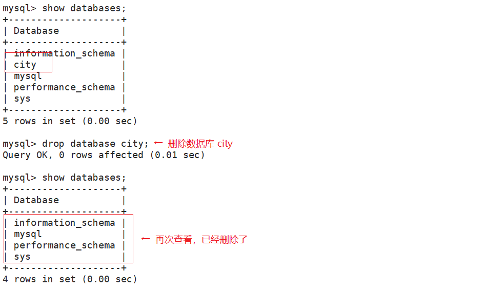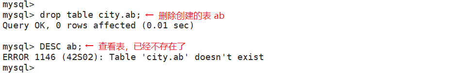 - DROP TABLE [数据库名.]表名; #如不用USE进入库中,则需加上数据库名