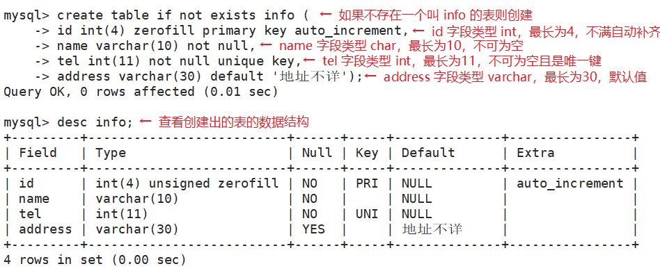 - #if not exists:表示检测要创建的表是否已存在,如果不存在就继续创建