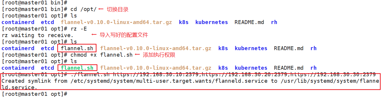 1 cd /opt 2 chmod +x flannel.sh 3 ./flannel.sh https://192.168.229.90:2379,https://192.168.229.80:2379,https://192.168.229.70:2379