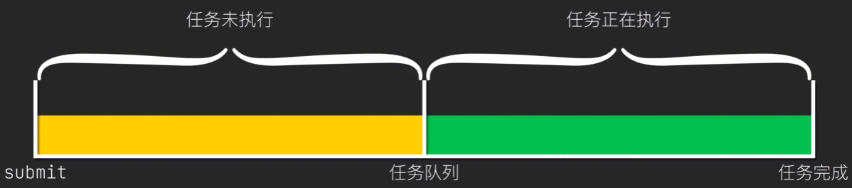 从任务队列到任务完成这个阶段任务正在执行,再往后面就是任务完成。