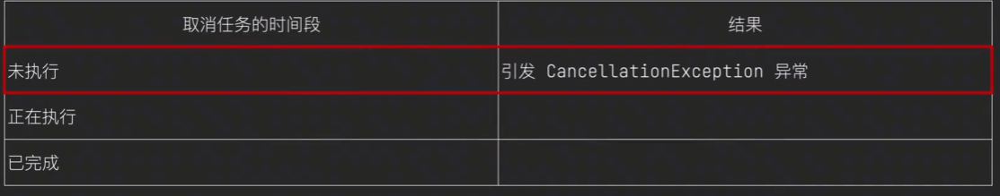 由此可见,取消未执行的任务时,获取结果会引发任务取消异常。