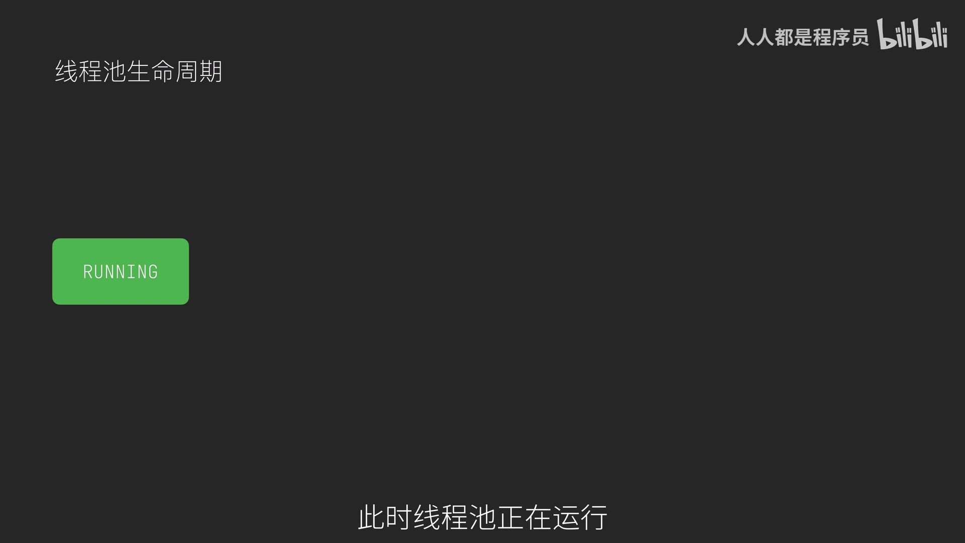 限制池生命周期也可以画出来了,线程池最初的状态是running,此时线程池正在运行,
