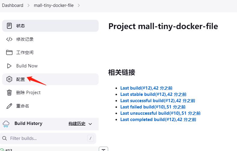 点击正在构建的任务,或者点击任务名称,进入详情页面,查看控制台输出,看是否能成功打成jar包。