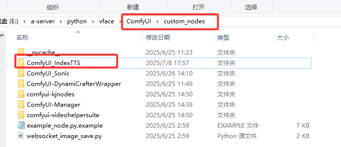 解压到文件夹ComfyUI\custom_nodes 中,修改文件夹名字为ComfyUI_IndexTTS