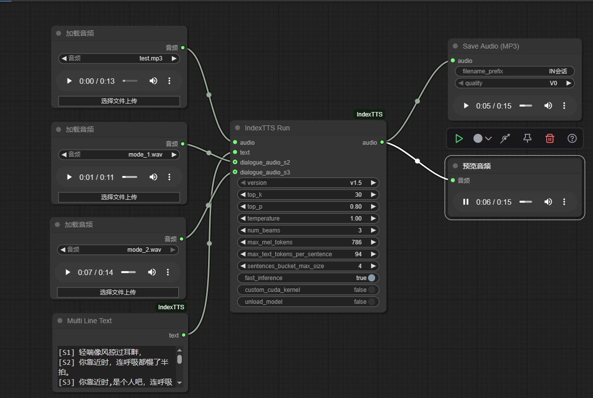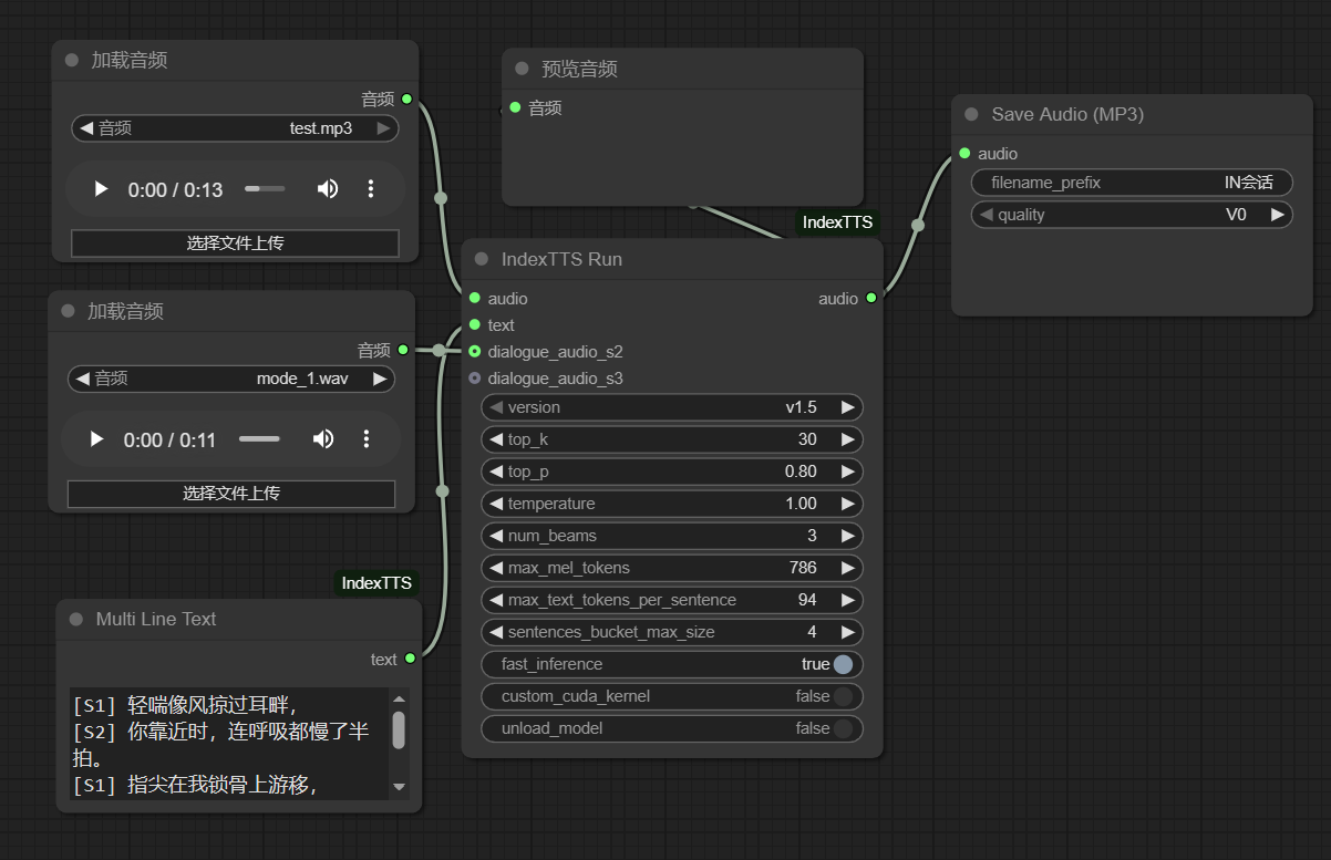 当然你可以修改人口文件:indexttsnode.py ,增加更多人对话:S1是第一个音频说的话,S2是第二个人说的话,S3是第三个人说的话。
