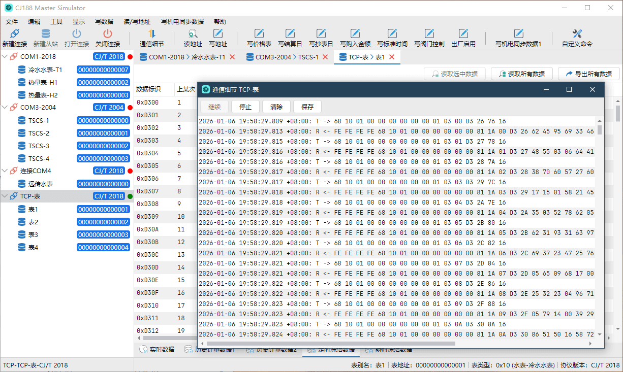 - 支持通过串口和 TCP 连接 CJ/T188 设备。