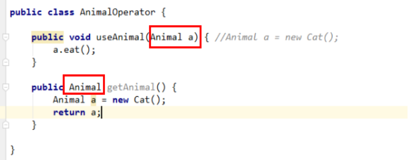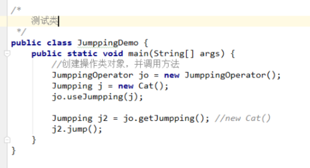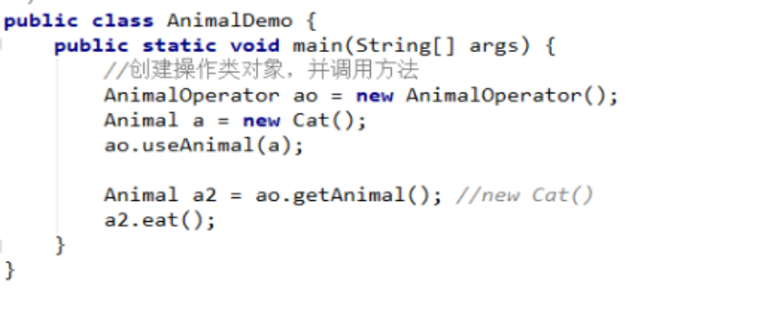- 写一个使用类,写一个方法,方法的参数是接口类型