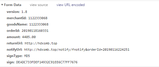 $data['notifyUrl']='http://hdxsmb.top/notify/fnotify&orderId=20190116224251'; #支付成功后端回调地址