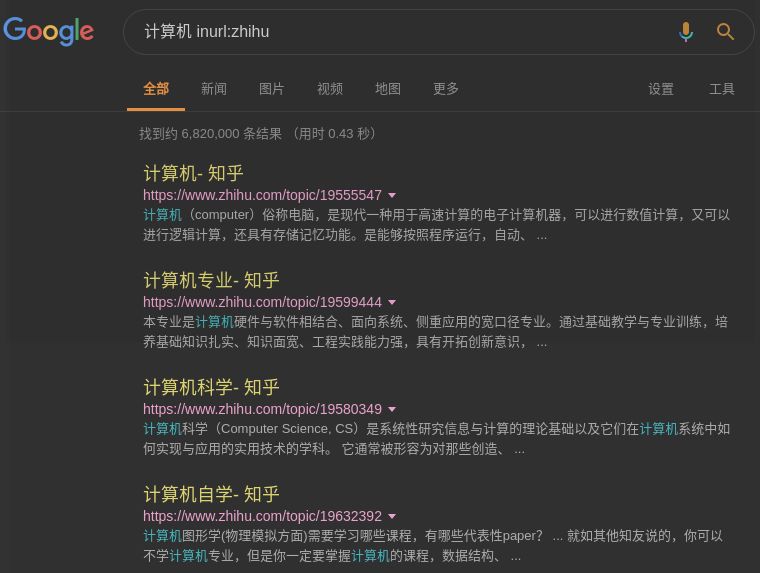 例如,我们需要搜索链接中包含”zhihu“的结果: