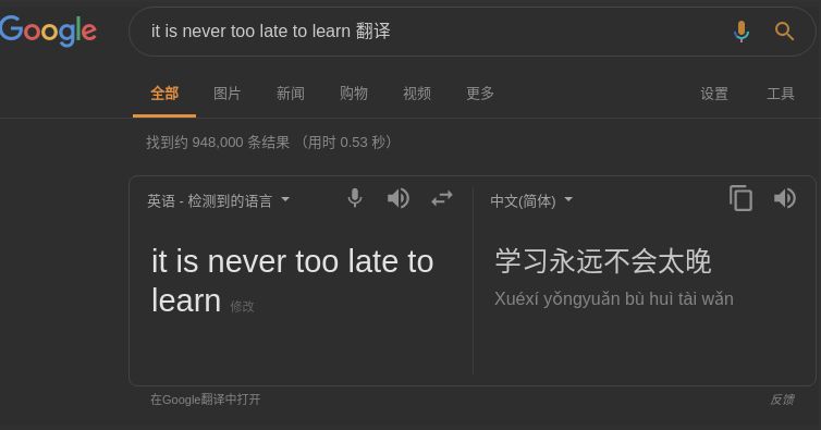 例如需要翻译:it is never too late to learn
