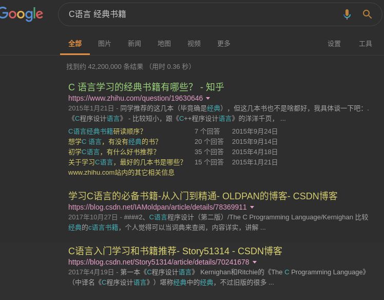 搜索时,它的结果包含C语言,或者包含经典书籍。