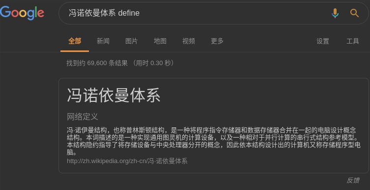 例如,我们想要查询冯诺依曼体系的定义,只需要像下面这样搜索即可: