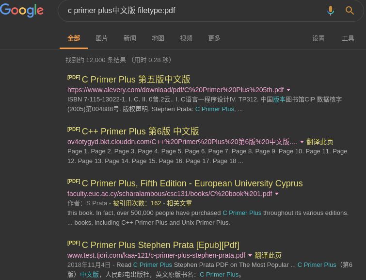 例如想要搜索《c primer plus》的pdf版本,只需要搜索输入: