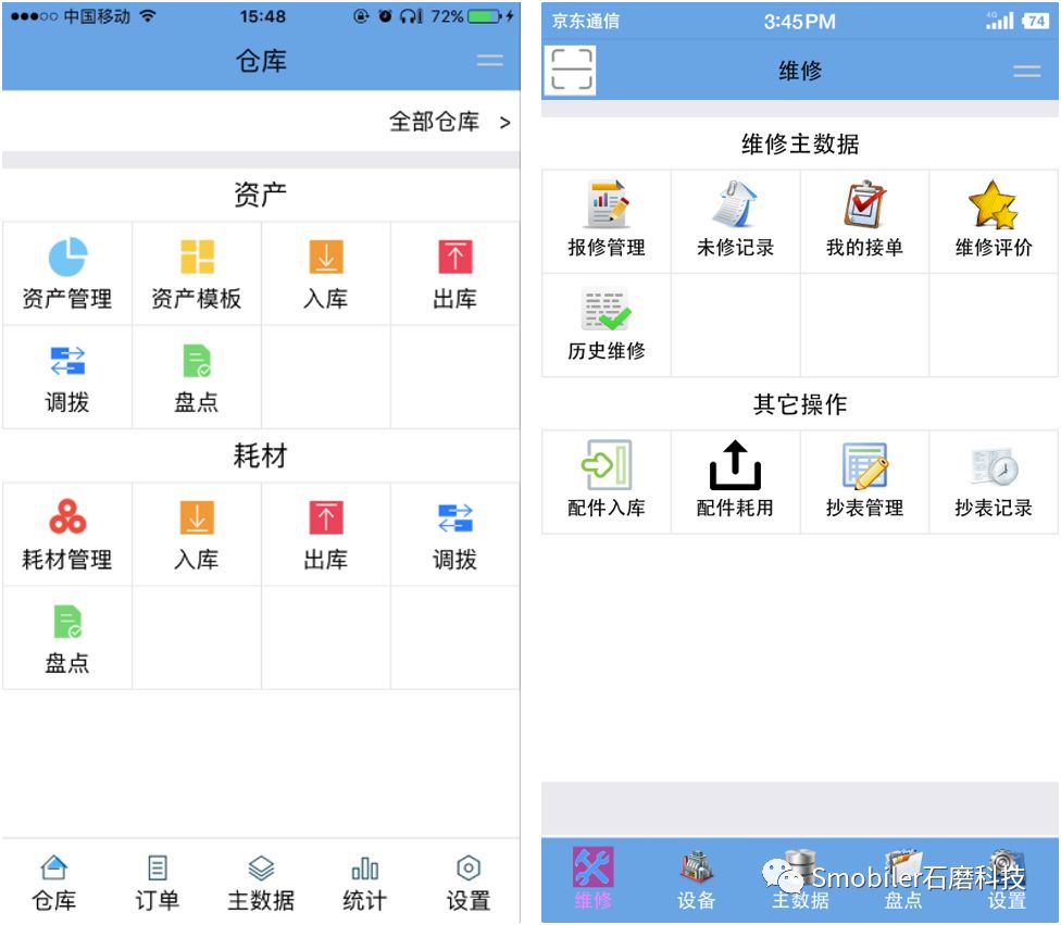 左图是SmoWMS的界面,右图是用户在SmoWMS源码基础上的修改