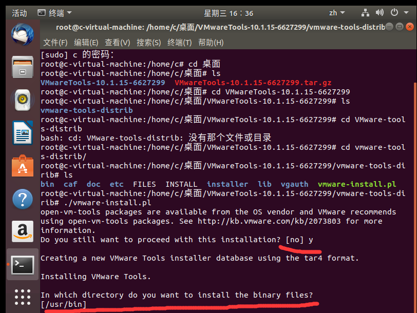 9.运行我们的安装程序,输入:./vmware-install.pl