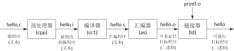 要使一个C/C++文件变成可执行文件,需要经过如下四个步骤:预处理、编译、汇编、连接。即: