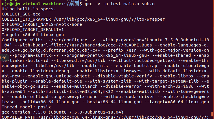可以看见,除了main.o、sub.o两个文件外,还连接了启动文件crt1.o、crti.o等,还有一些库文件。