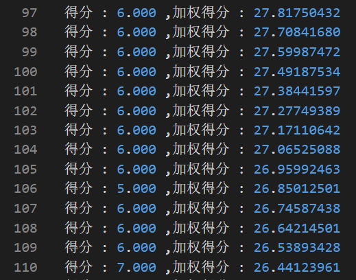 观察加权分数,可以看到分数波动是非常剧烈的,但通过多次探索后,会以极快的速度达到游戏设定的满分3000分