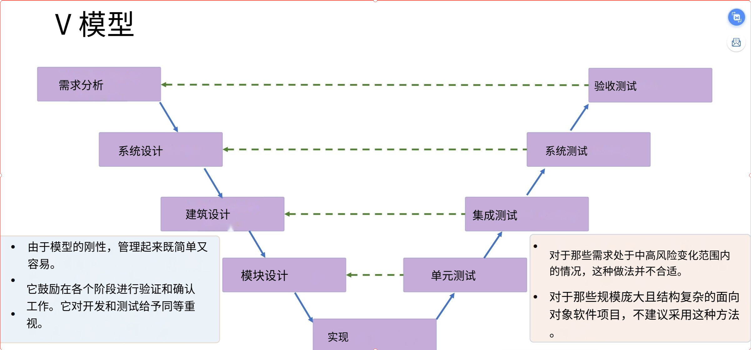 (图示: V形结构,左侧下降为开发阶段,右侧上升为测试阶段,一一对应)